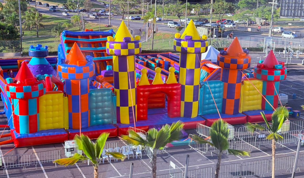 O evento vai transformar parte do estacionamento G do Shopping Del Rey em um universo lúdico para a garotada. A atração conta com 1,5 mil m² e inclui três tobogãs — sendo um gigante, com cerca de 8 metros de altura — além de brincadeiras de alpinismo, futebolão, pinos, labirinto, corrida de obstáculos, tambores de pulo, pirâmide e bolas de chão interativas.